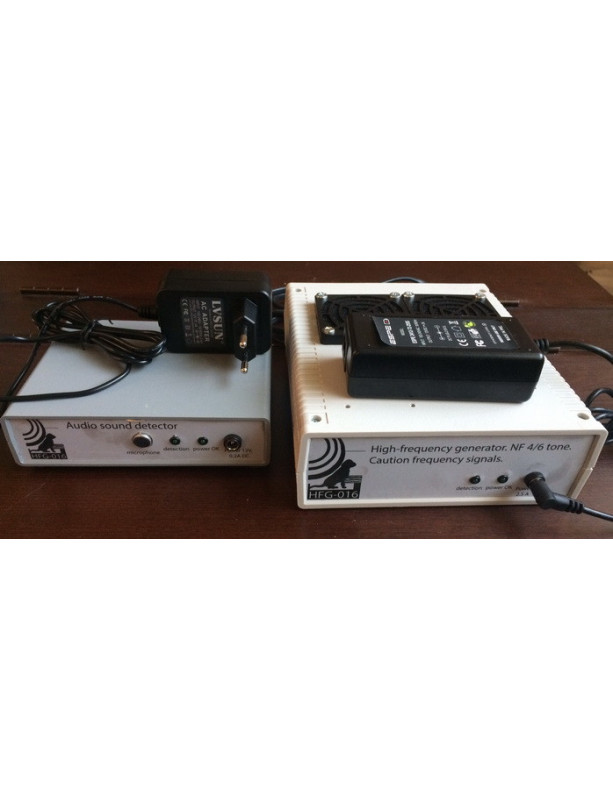Vysoce výkonný speciální psí repelent HFG-016 vyrobený na zakázku pro náročné zákazníky, kde je zvuk štěkajícího psa vzdáleně přenášen do vysokofrekvenčního vícenásobného generátoru energie. Přístroj je určen jako ochranné zařízení proti páskování psa. Nabízí tak humánní způsob ochrany proti nepříjemné psí štěkání - štěkání. Štěkající repelent má vestavěný zvukový senzor na dálkovém modulu, který reaguje na štěkání psa. Jakmile pes zachytí štěkání, aktivuje na několik sekund pro psy nepříjemnou frekvenci ve vnějším generátoru, který vyzařuje ze 4/6 vestavěných vysokofrekvenčních speciálních piezomeperů, reproduktorů.