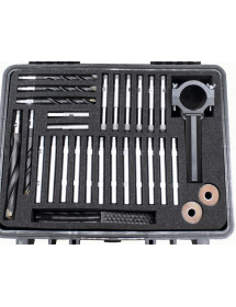 Sada zařízení na vytváření kanálů ve stavebních konstrukcích z cihel a pěnobetonu do hloubky nejméně 300 mm.
