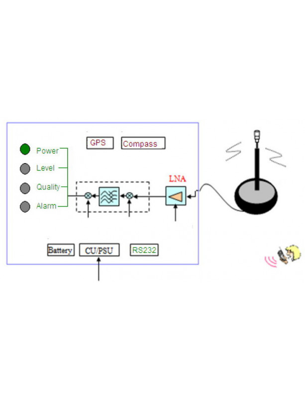 Signál ze základny se dostal přes anténu přímo, pak přenášen přes zesilovač s nízkým šumem (LNA), vstoupí do RF filtru pro selektivní širokopásmové připojení a objevil se ve Velké Británii (Monitor Center Board) jednotky.