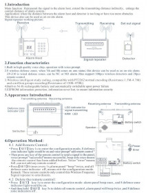 Bezdrátové inteligentní kódování může být do určité míry přizpůsobeno dálkovým ovládáním, kompatibilní s normálním kódováním PT 2262 (Odpor 1,5 M - 4,7 M) (odpor 150 K - 470 K).