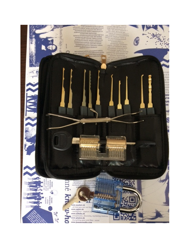 Typ: Sada nástrojů pro otevírání a hlavně výuku mechaniky principu zámků. Sada obsahuje visací zámek, FAB zámek a 20 + 5 paklíčem.