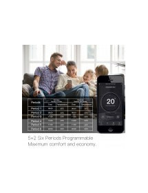 Termostat je vybaven wifi modulem pro bezdrátové připojení k lokální síti. Poté můžete ovládat a nastavit termostat přes tablet nebo android nebo iOS telefon. To může změnit teplotu, aniž by museli vstát a chodit do termostatu. Více termostatů lze také provozovat v jedné místní síti a na jednom tabletu nebo telefonu. Samozřejmě můžete ovládat termostat a nastavit jej přes internet, daleko od domova.