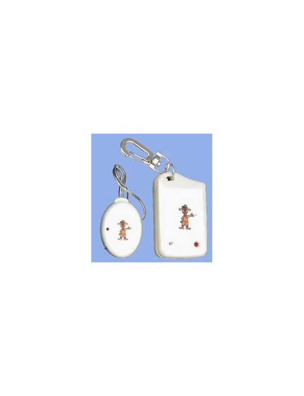 Funkce: Umístěte přijímač a aktiv te ho aktiv teče do chráněného prostoru. (viz níže), připojte vysílač k oděvu. Pokud je dítě s vysílačem v blízkosti přijímače, přijímač začne pískat.
