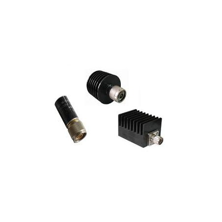 This series of terminations are medium power coaxial loads which operate from DC to 2.5 GHz. Cooling fins minimize temperature rise. The terminating element is enclosed within a carefully matched coaxial housing. Standard connectors are N and 7-16 DIN male or female.